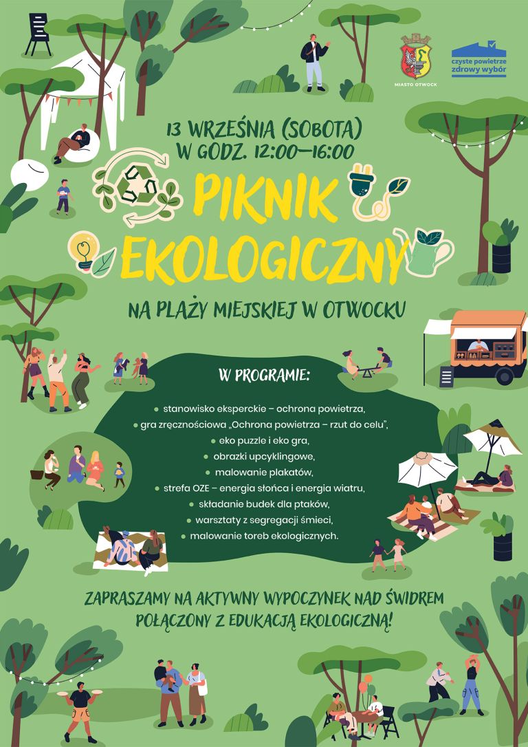Czytaj więcej →Już w najbliższą sobotę 13 września, zapraszamy na Piknik Ekologiczny na Plaży Miejskiej w Otwocku, w godzinach 12:00 - 16:00.Wydarzenie ma na celu promocję postaw...